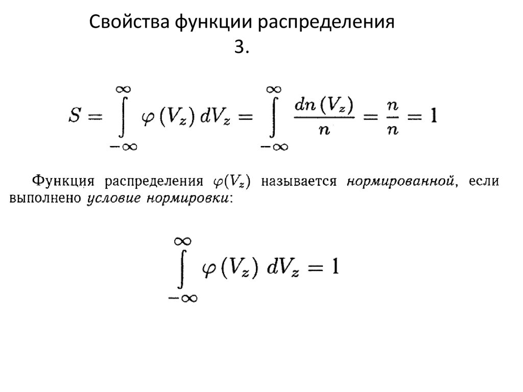Свойства функции распределения молекулидеального газа по значениям модуля скорости