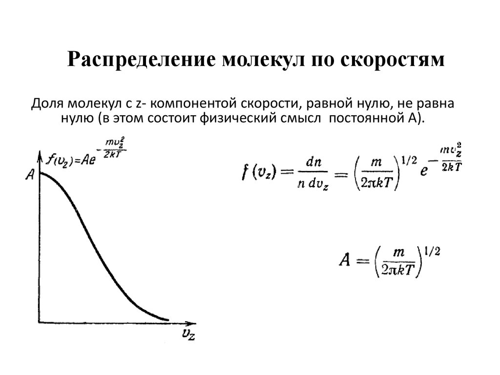 Распределение молекул по скоростямДоля молекул с z- компонентой скорости, равной нулю, не равна