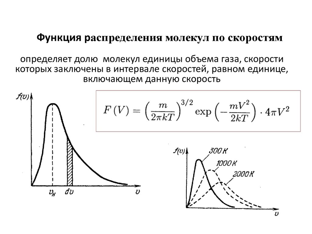 Функция распределения молекул по скоростямопределяет долю молекул единицы объема газа, скорости