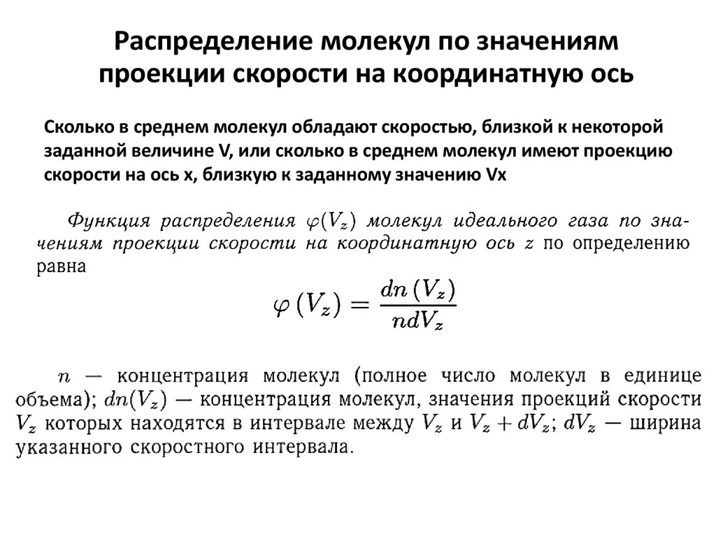 Распределение молекул по значениямпроекции скорости на координатную ось