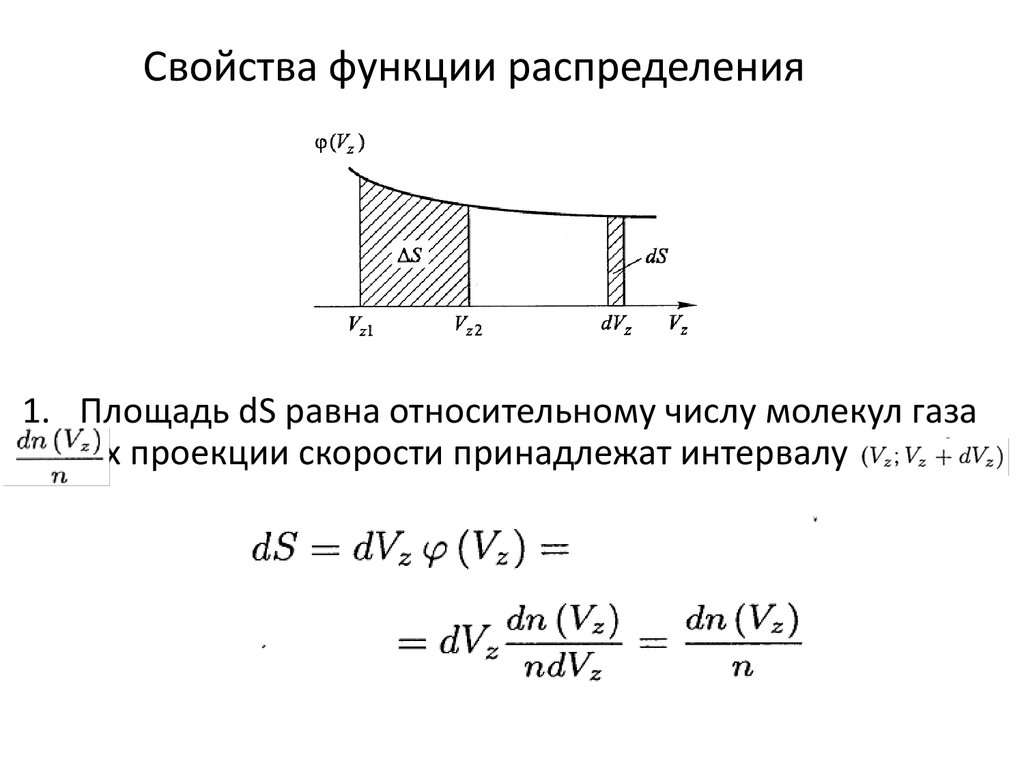 Свойства функции распределения1. Площадь dS равна относительному числу молекул газа