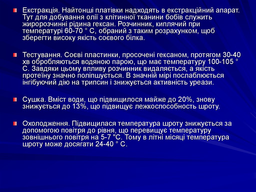 Тестування. Соєві пластинки, просочені гексаном, протягом 30-40