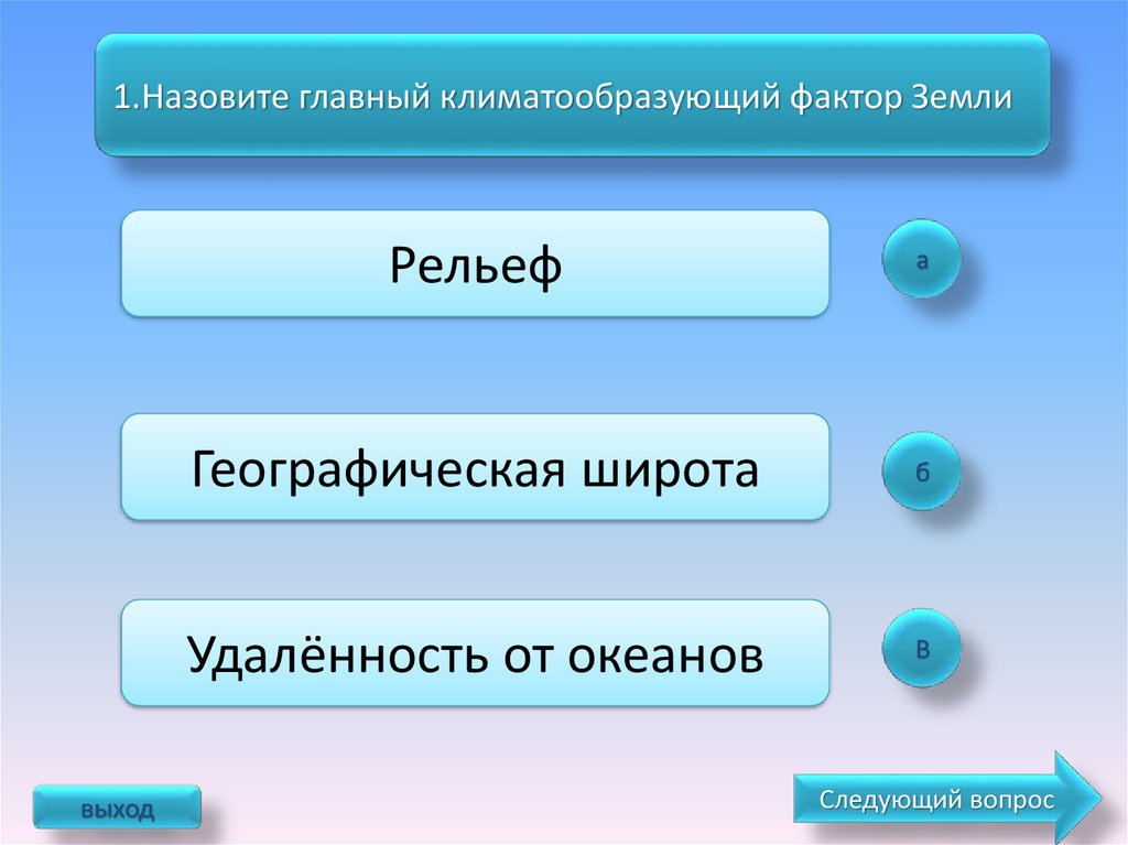 10. Тест по теме: «Причины, от которых зависит климат Земли»
