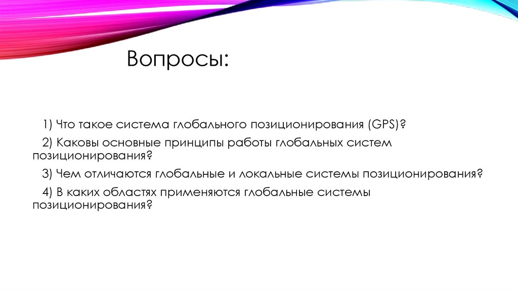 Вопросы:1) Что такое система глобального позиционирования (GPS)?