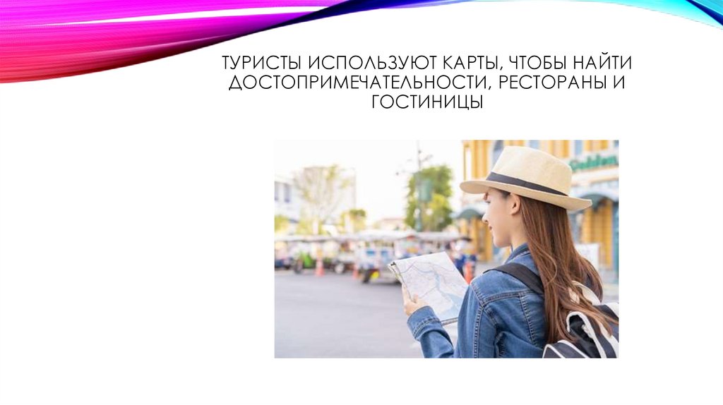 ТУРИСТЫ ИСПОЛЬЗУЮТ КАРТЫ, ЧТОБЫ НАЙТИДОСТОПРИМЕЧАТЕЛЬНОСТИ, РЕСТОРАНЫ И