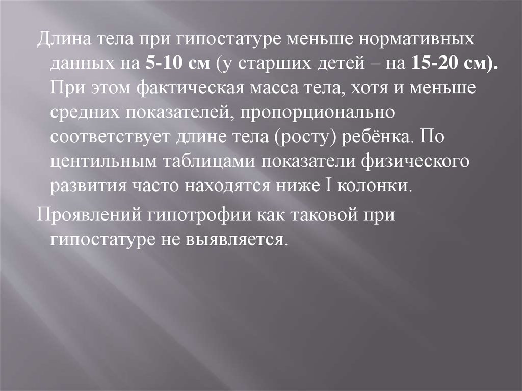 Гипостатура – хроническое расстройство питания,которое проявляется равномерным отставанием