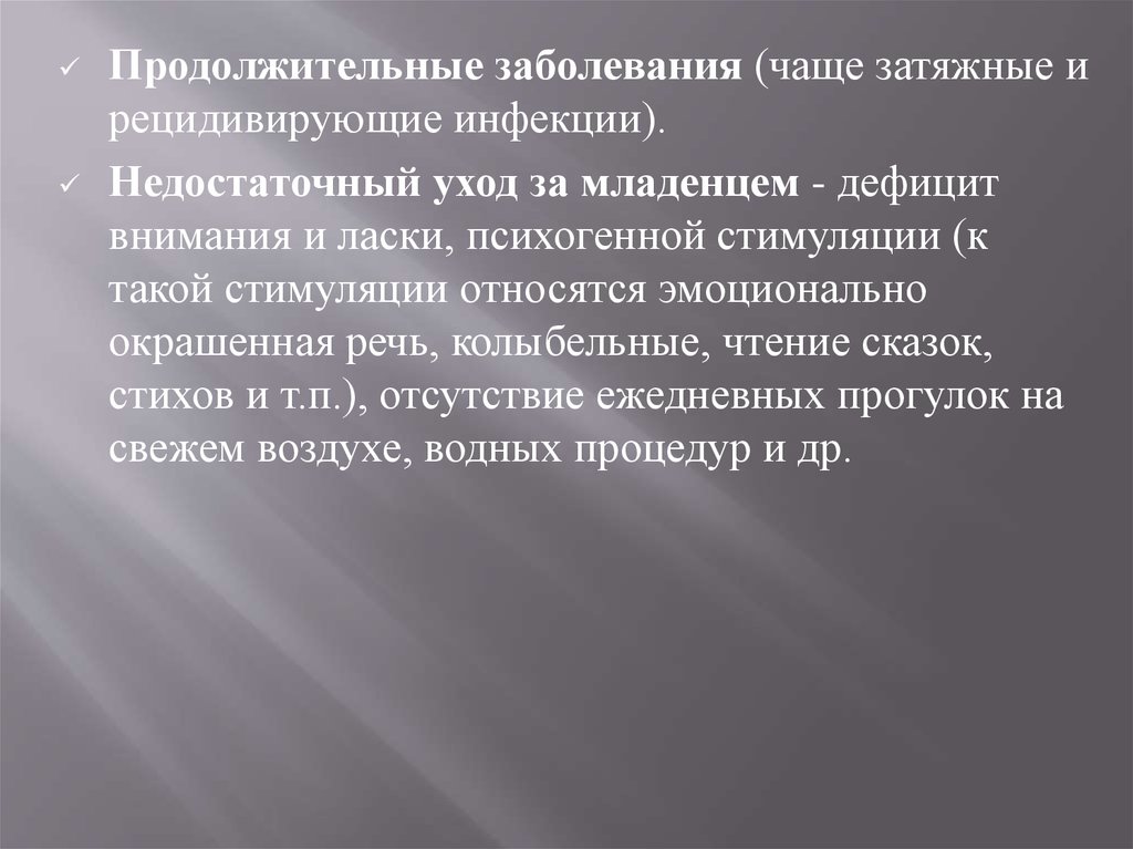 Продолжительные заболевания (чаще затяжные ирецидивирующие инфекции).