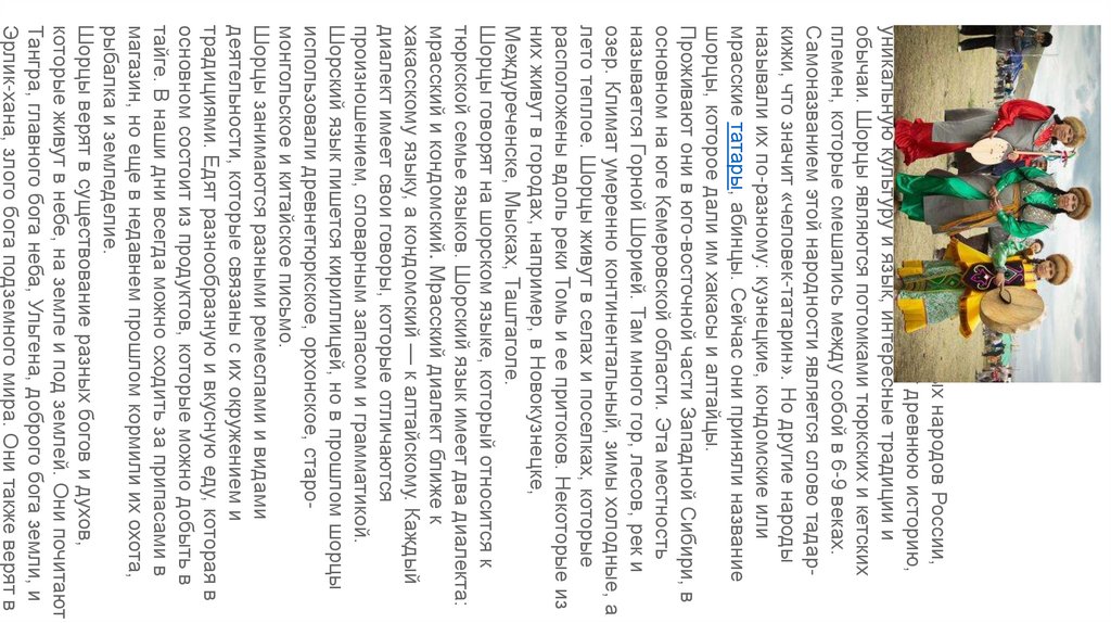 Шорцы — это один из малочисленных народов России,который живет в Сибири. Они имеют древнюю историю,