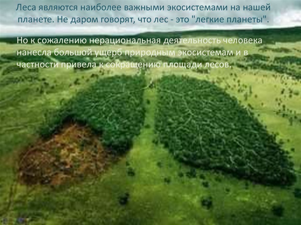 Леса являются наиболее важными экосистемами на нашейпланете. Не даром говорят, что лес - это "легкие планеты".