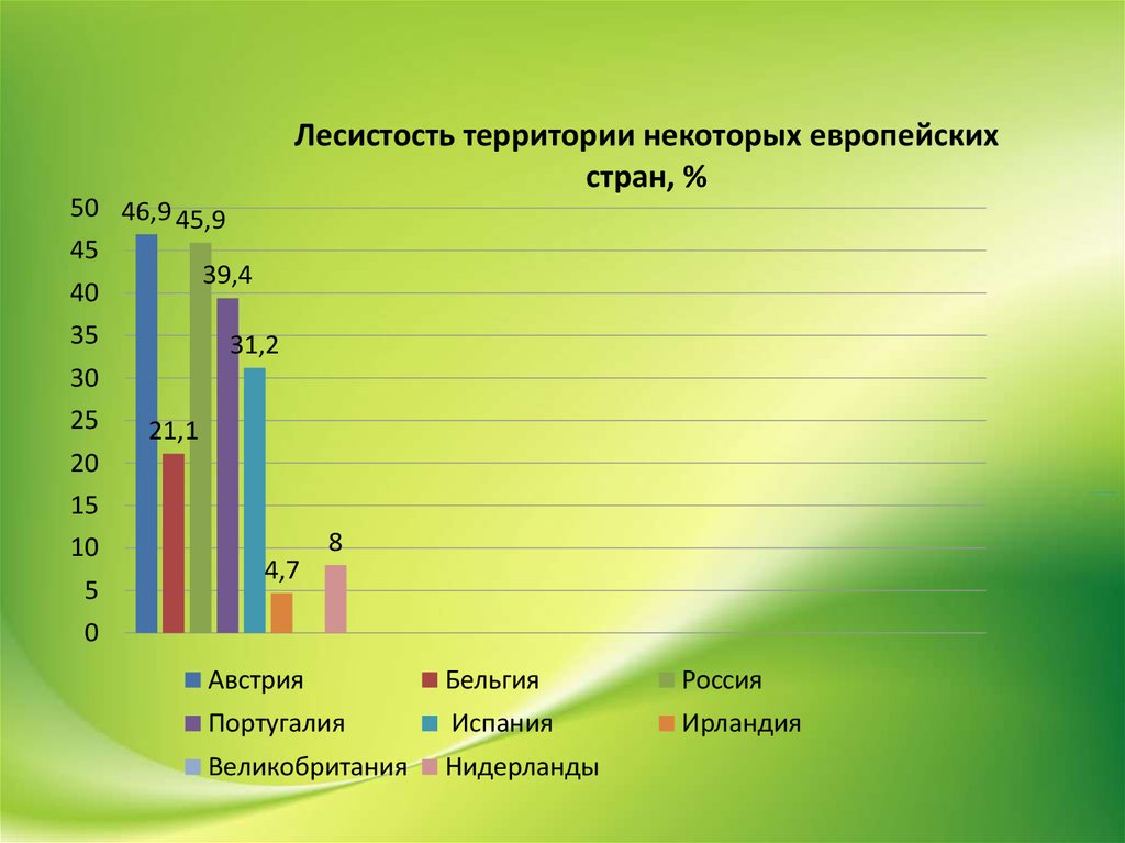 Лесистость территории некоторых европейскихстран, %