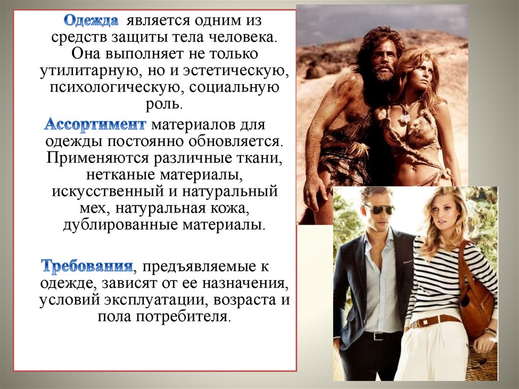 одежде, зависят от ее назначения,