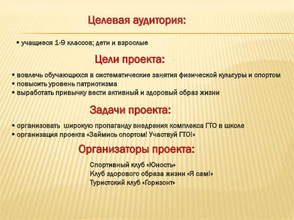 организация проекта «Займись спортом! Участвуй ГТО!»