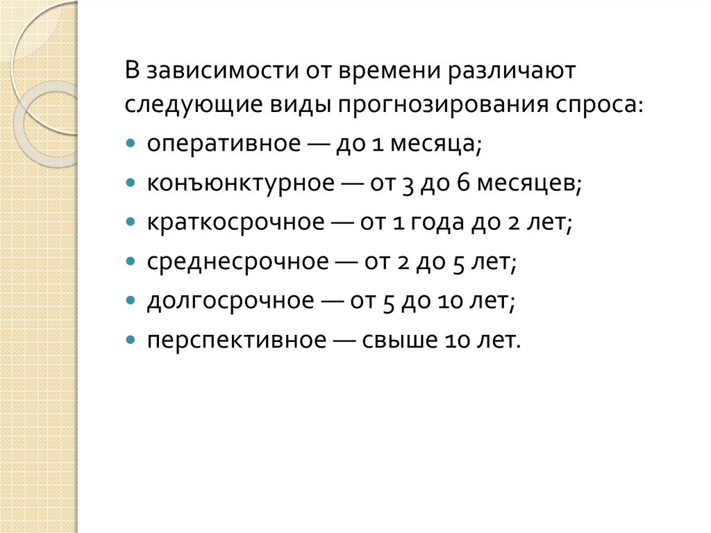 В зависимости от времени различаютследующие виды прогнозирования спроса: