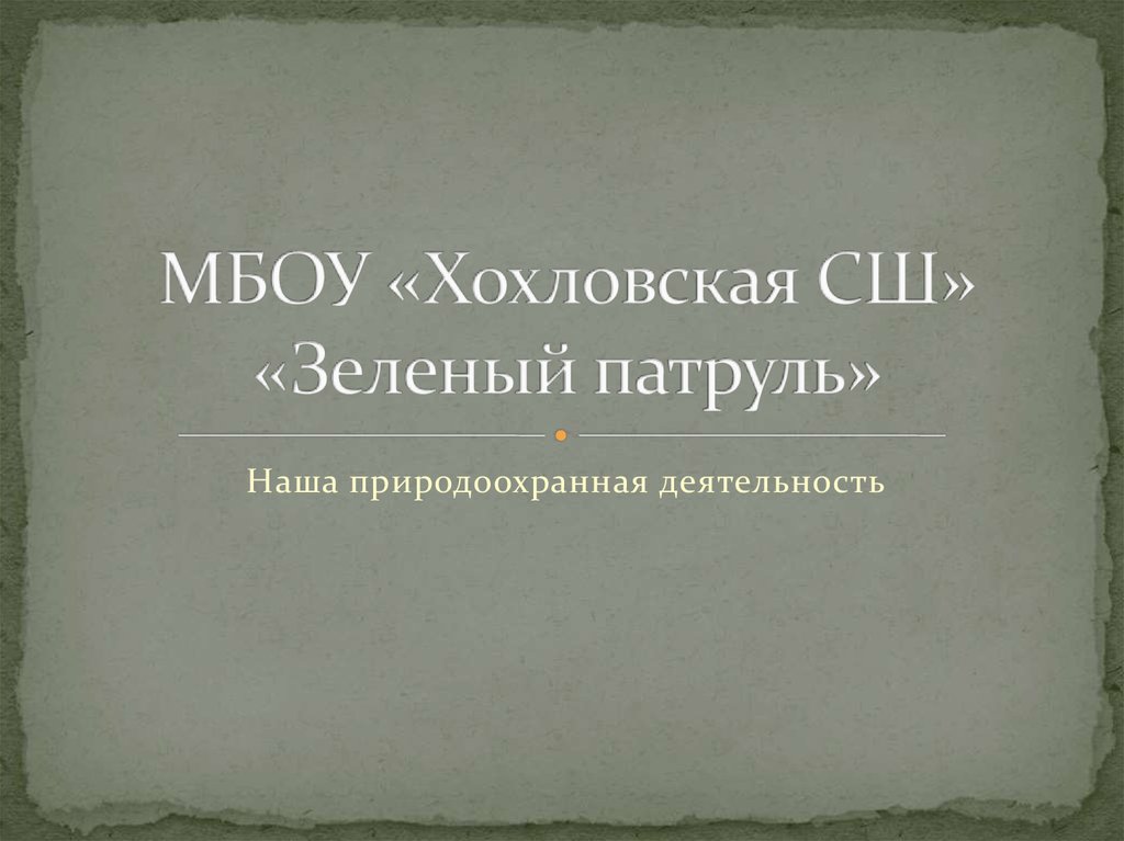 МБОУ «Хохловская СШ» «Зеленый патруль». Наша природоохранная деятельность