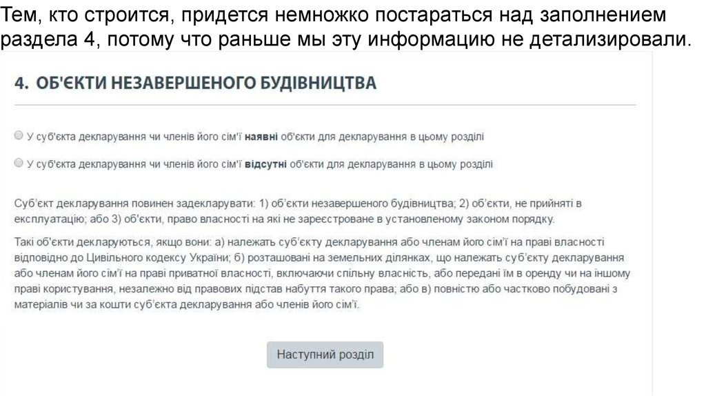 Тем, кто строится, придется немножко постараться над заполнениемраздела 4, потому что раньше мы эту информацию не детализировали.