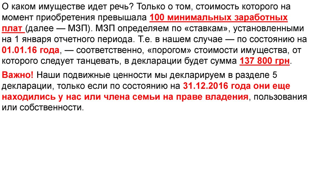 01.01.16 года, — соответственно, «порогом» стоимости имущества, от