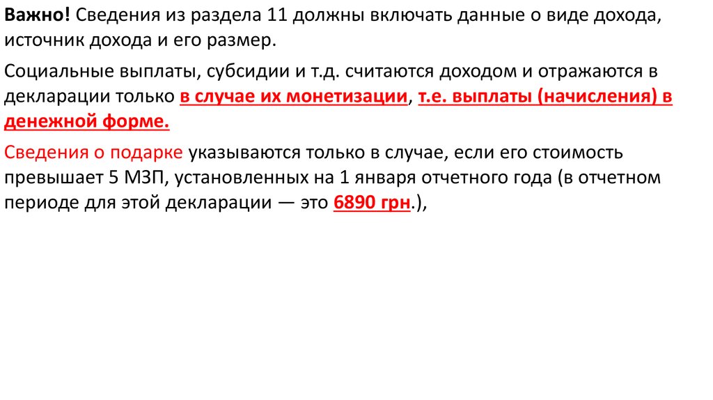 Важно! Сведения из раздела 11 должны включать данные о виде дохода,источник дохода и его размер.