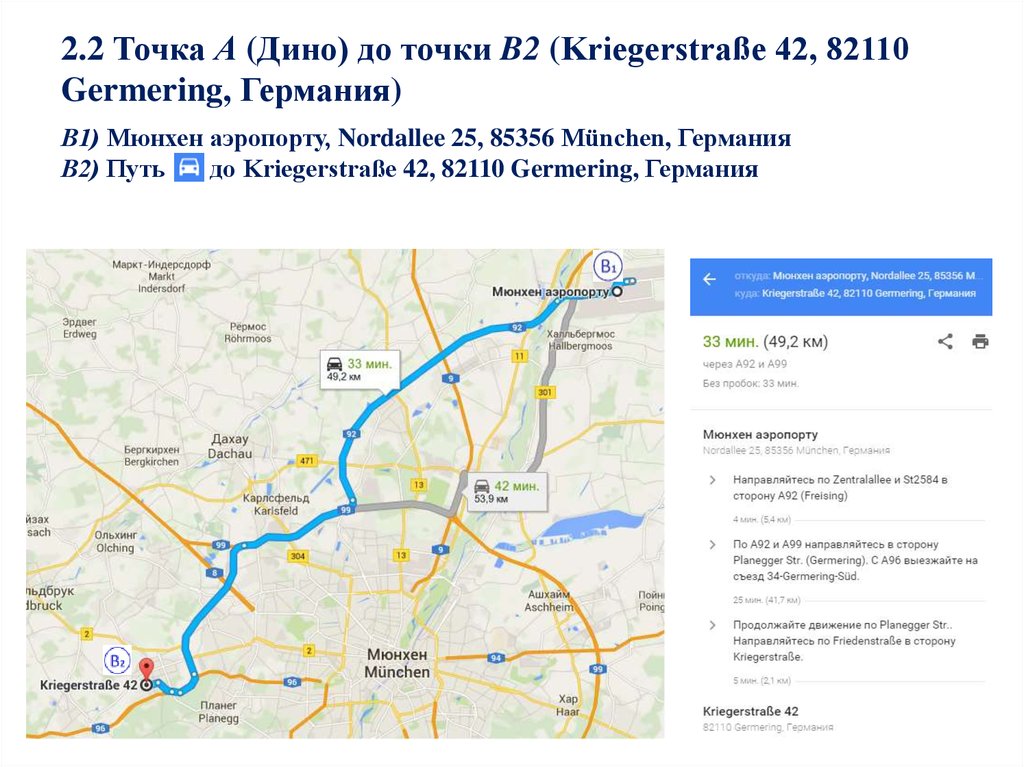2.2 Точка А (Дино) до точки B2 (Kriegerstraße 42, 82110Germering, Германия)