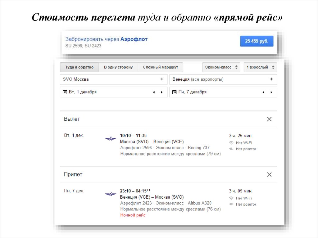 Стоимость перелета туда и обратно «прямой рейс»5.