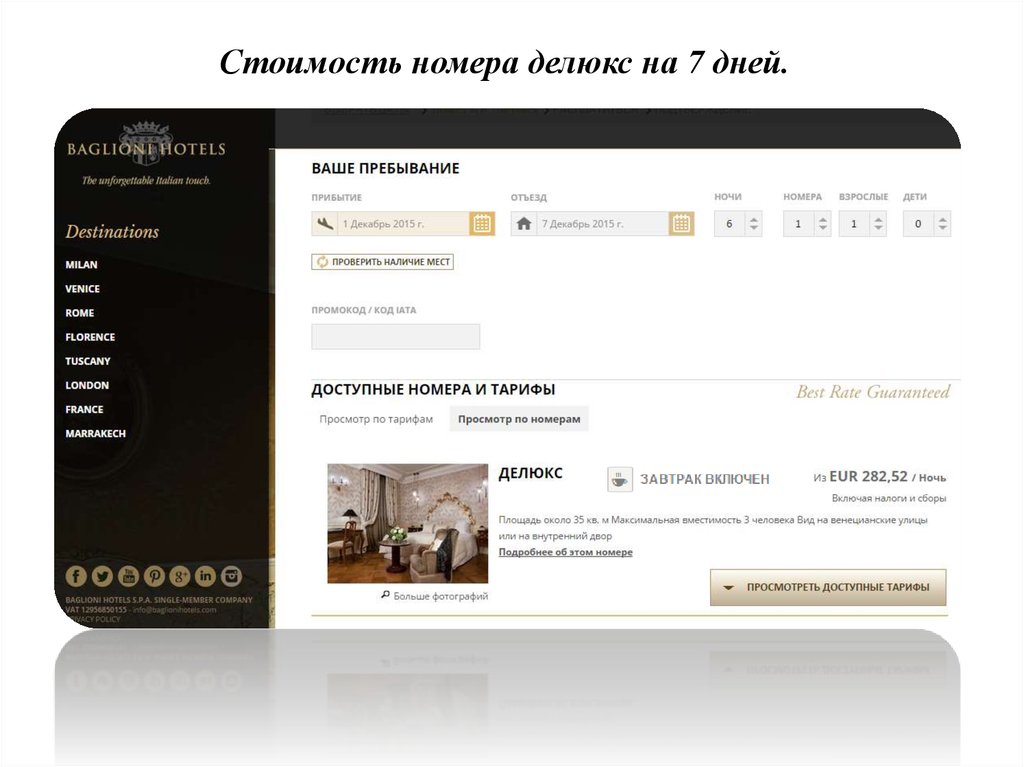 Стоимость номера делюкс на 7 дней.8.