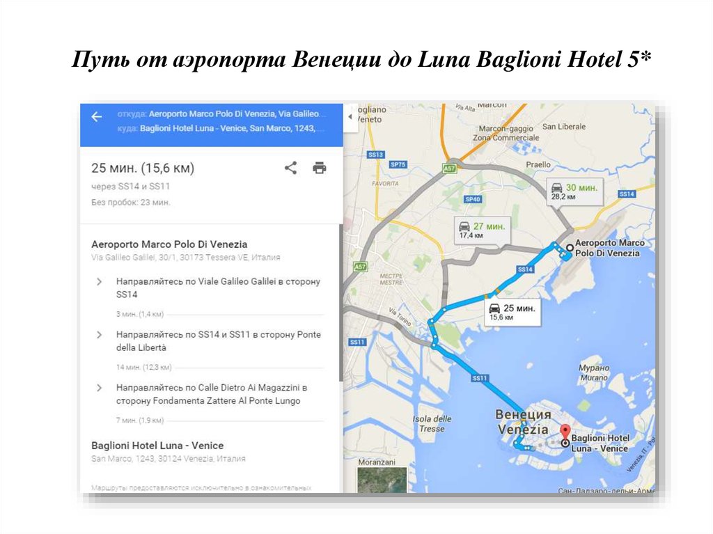 Путь от аэропорта Венеции до Luna Baglioni Hotel 5*10.
