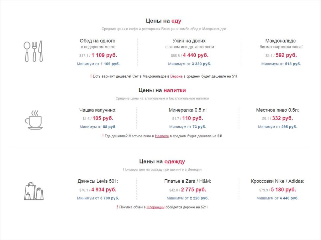 8 . http://www.tripbest.ru/world/europe/italy/venice/prices_vce.php Цены Венеции
