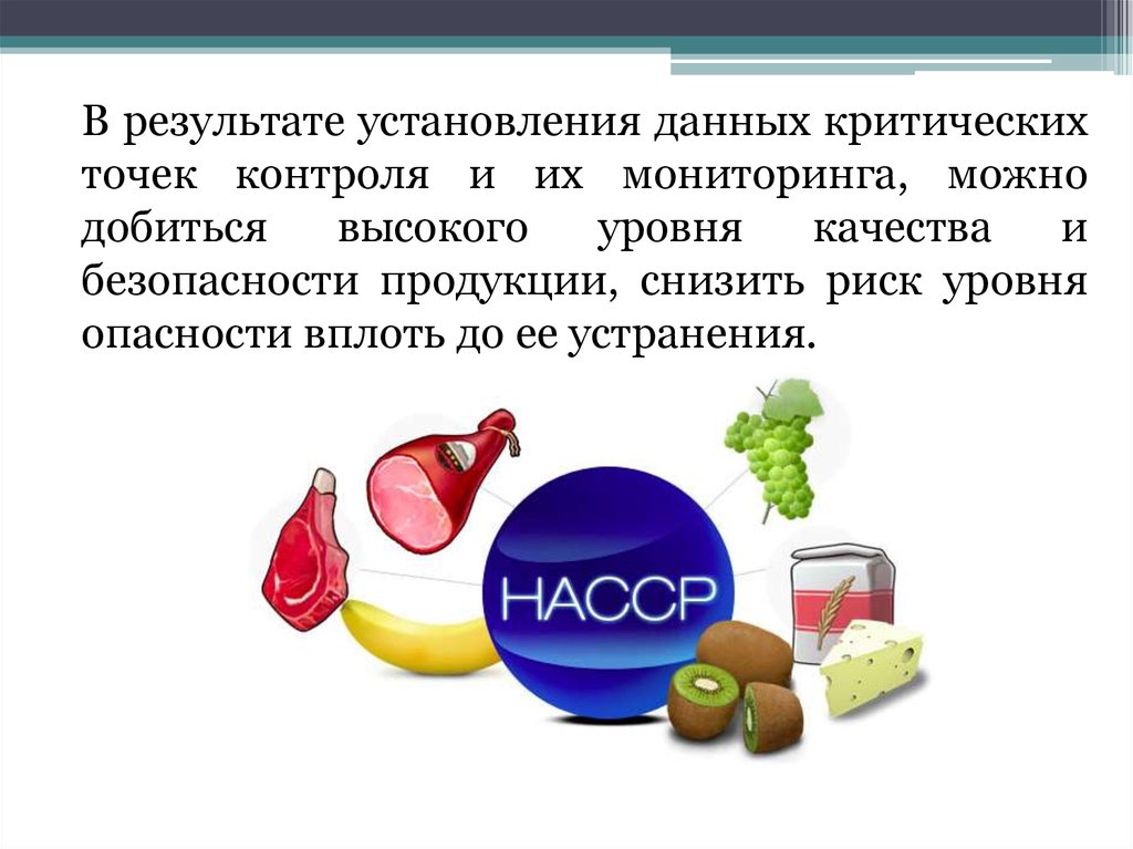 В результате установления данных критическихточек контроля и их мониторинга, можно
