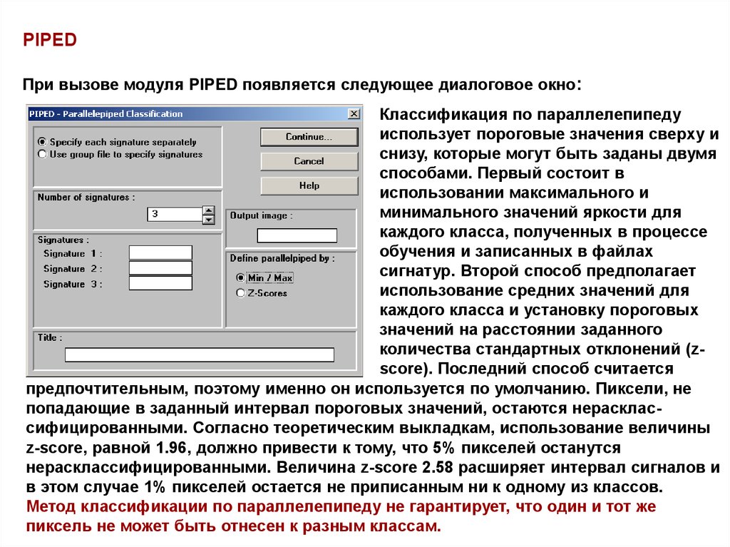 MINDISTМодуль MINDIST проводит классификацию спутниковых изображений методом