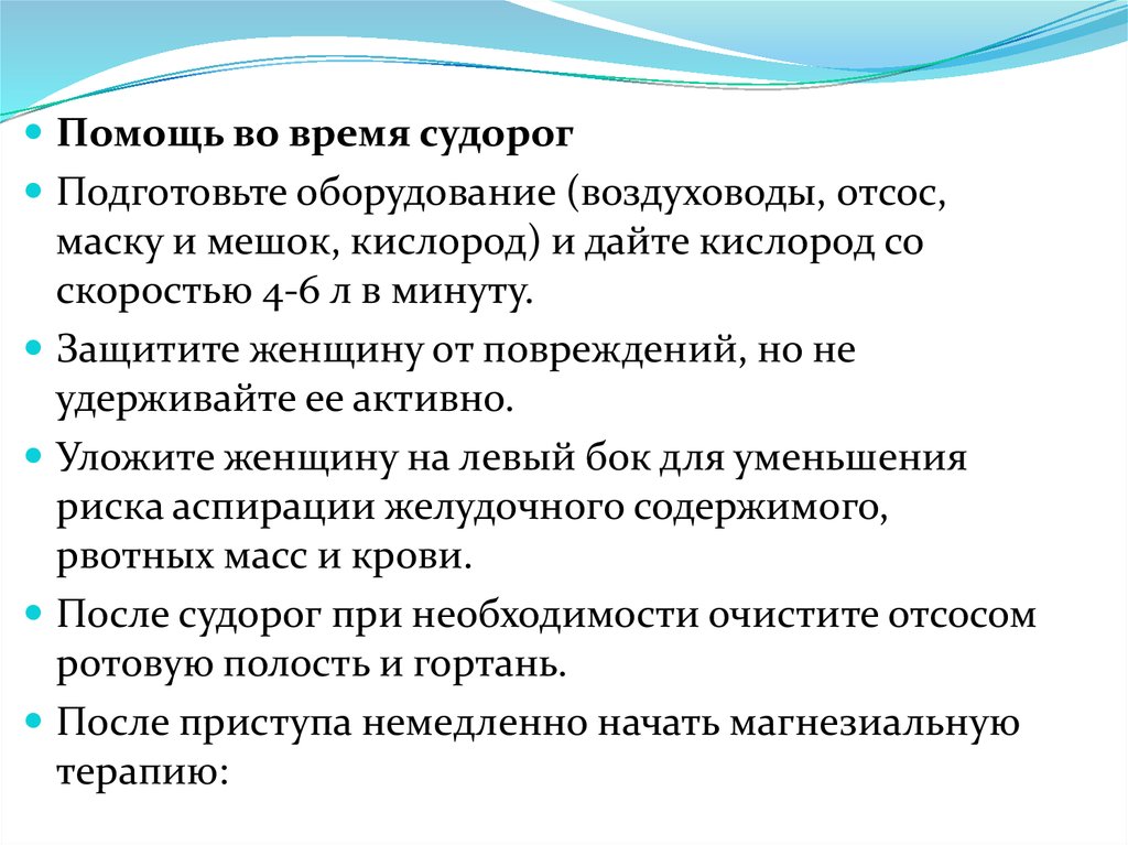Помощь во время судорогПодготовьте оборудование (воздуховоды, отсос,