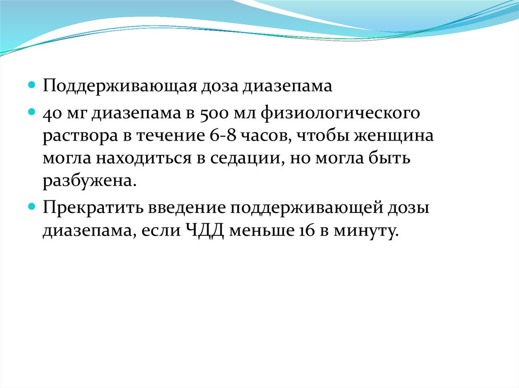 Поддерживающая доза диазепама40 мг диазепама в 500 мл физиологического