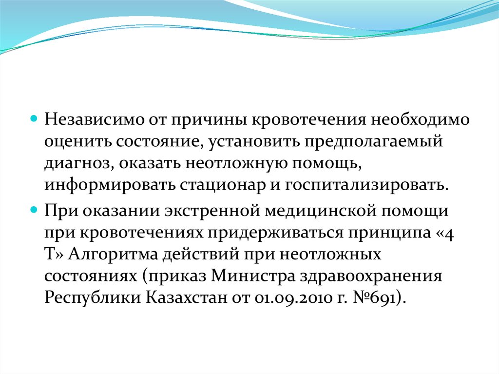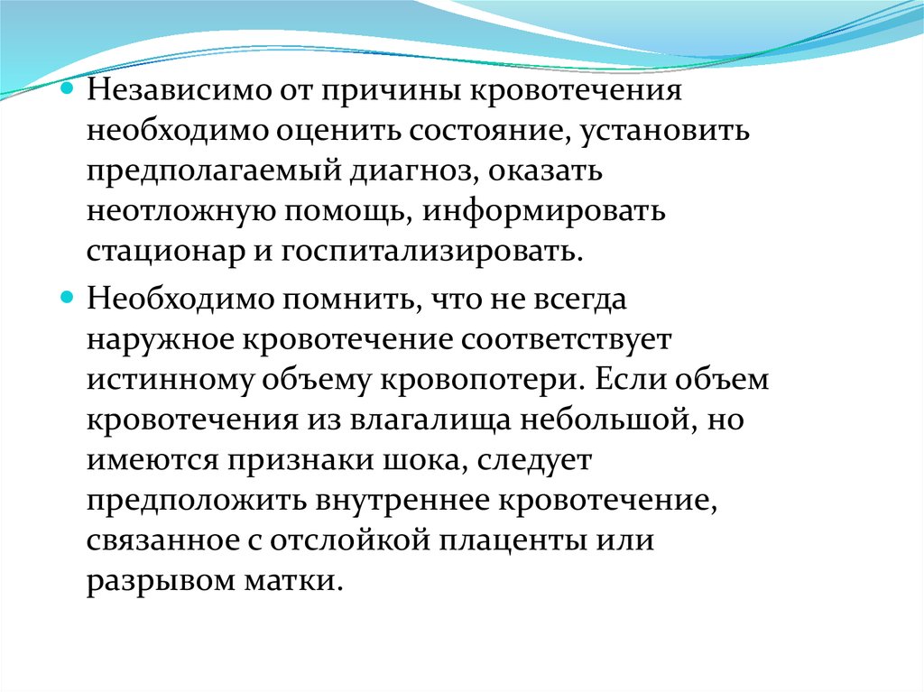 Независимо от причины кровотечения необходимооценить состояние, установить предполагаемый