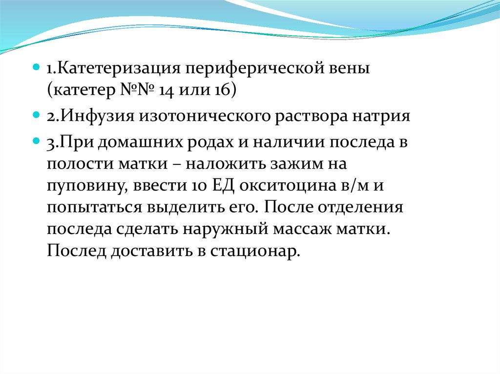 1.Катетеризация периферической вены(катетер №№ 14 или 16)