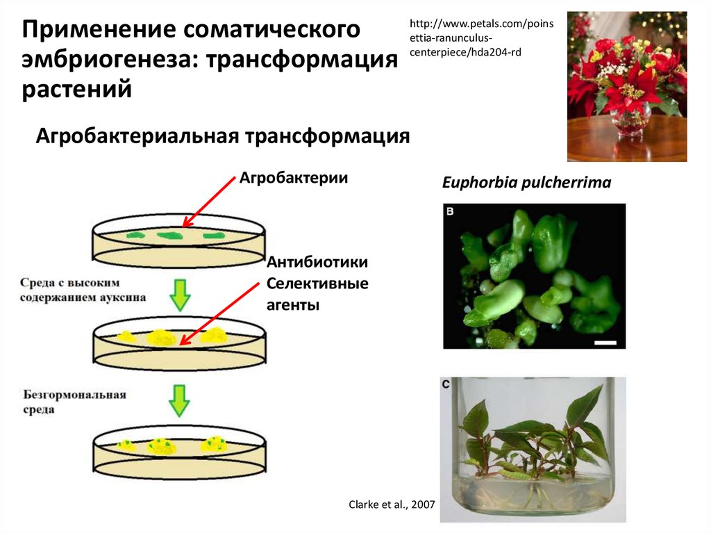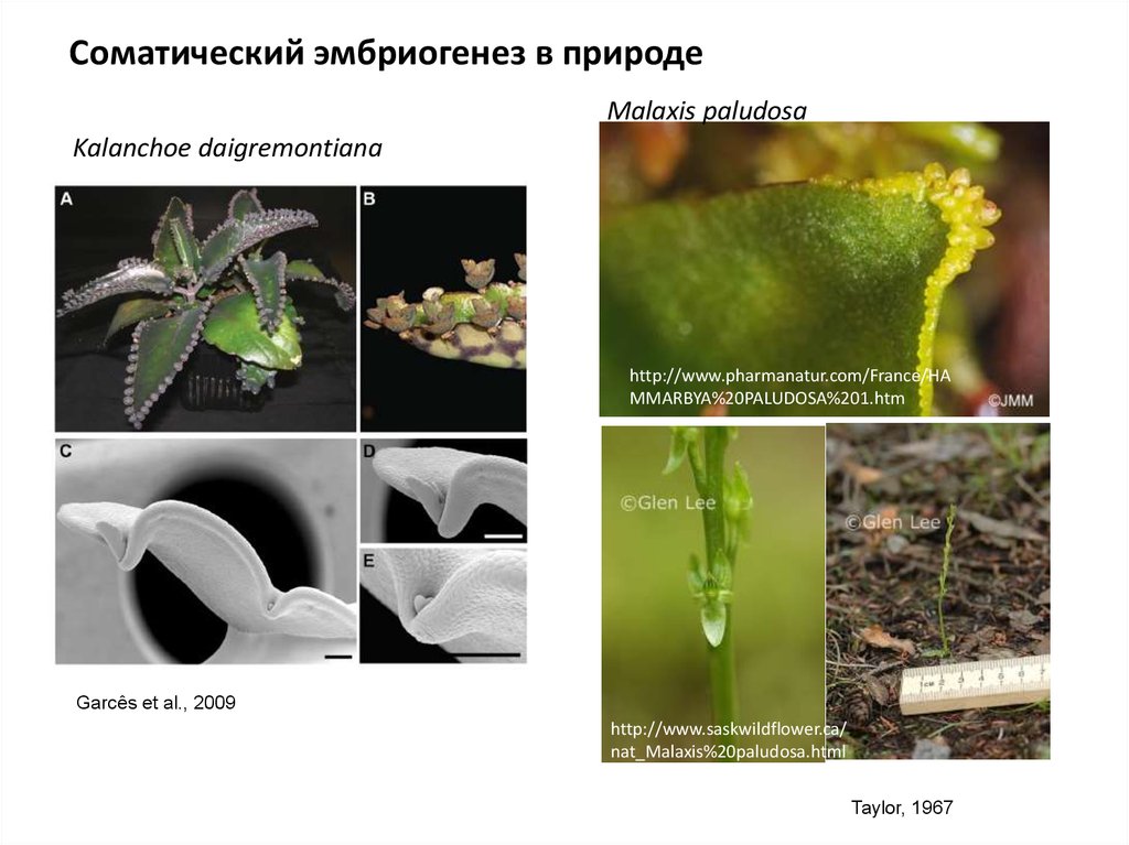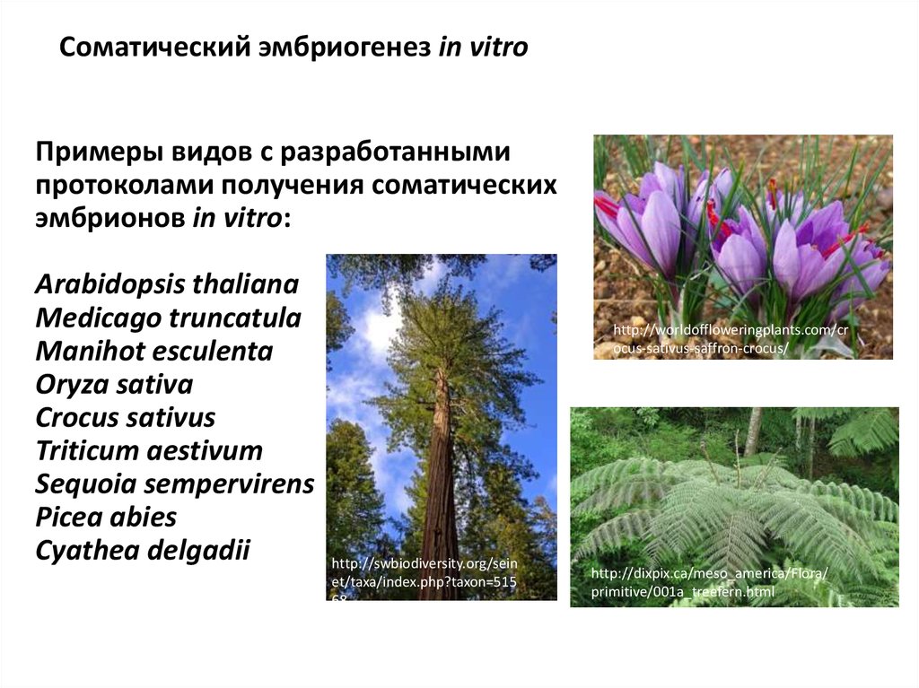 Cоматический эмбриогенез in vitroПримеры видов с разработанными