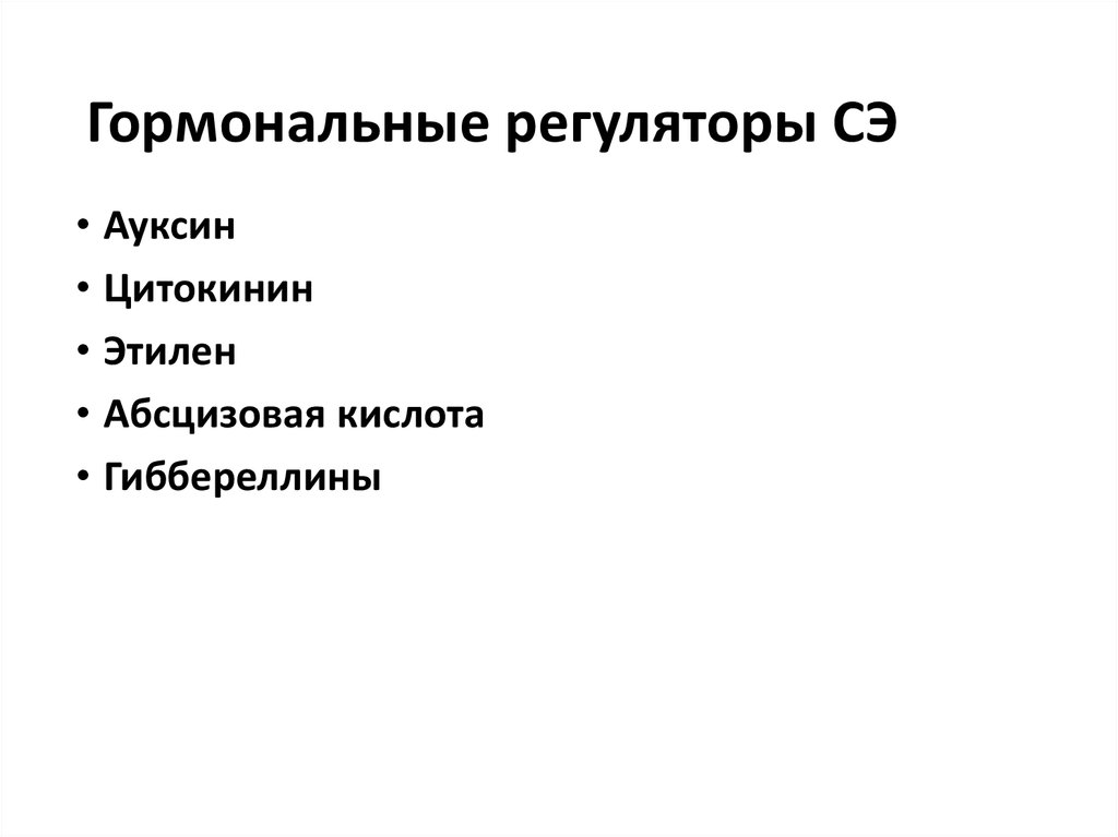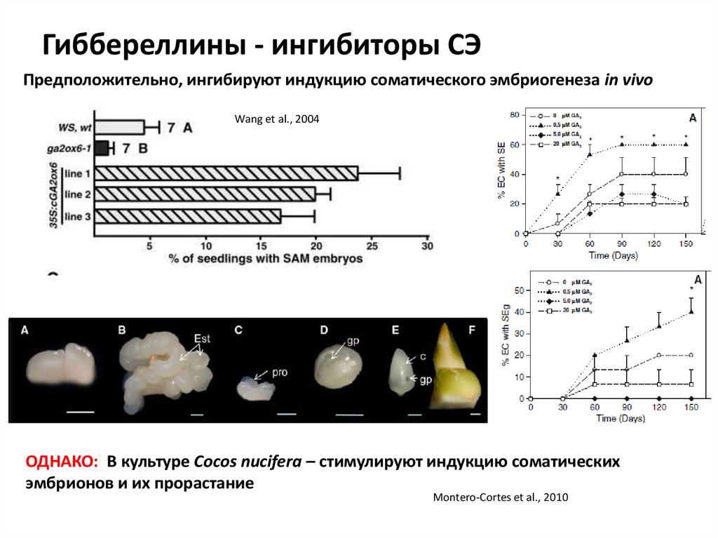 Гиббереллины - ингибиторы СЭПредположительно, ингибируют индукцию соматического эмбриогенеза in vivo