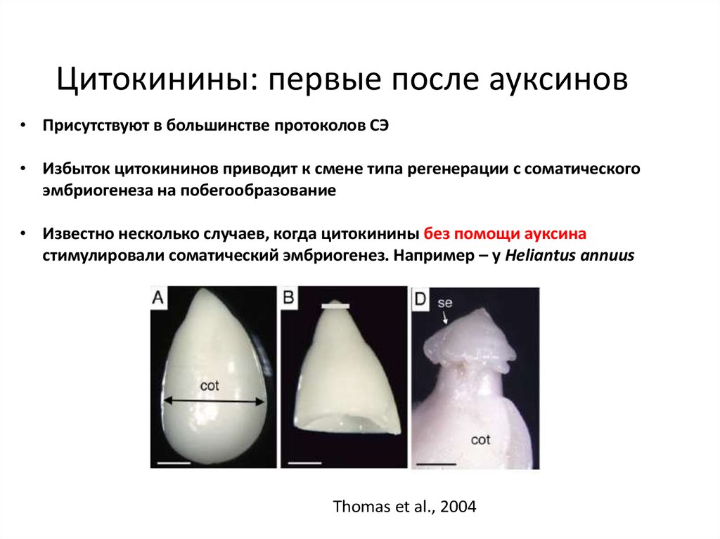 стимулировали соматический эмбриогенез. Например – у Heliantus annuus