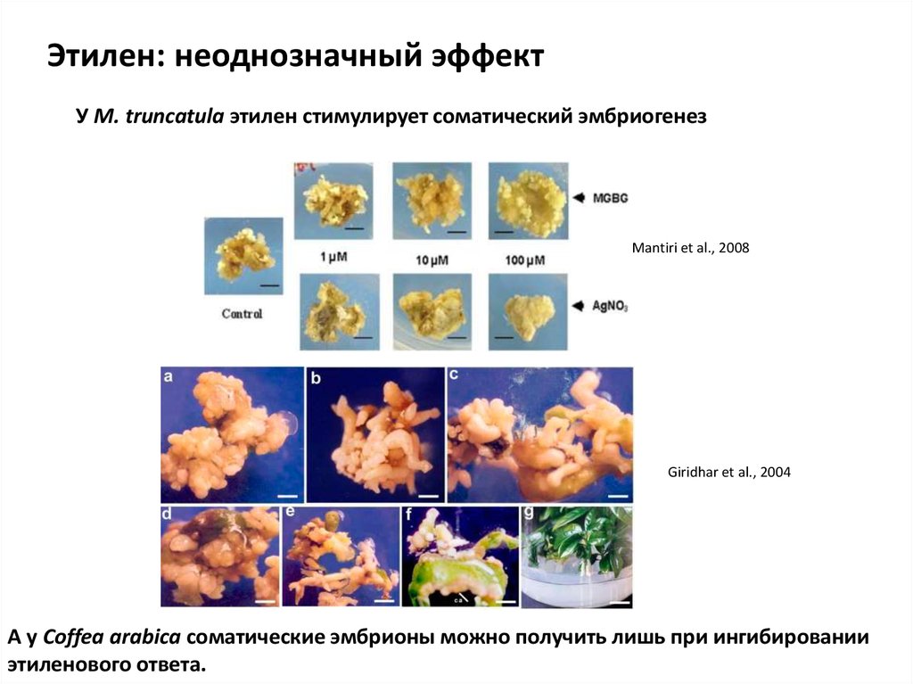 Этилен: неоднозначный эффектУ M. truncatula этилен стимулирует соматический эмбриогенез
