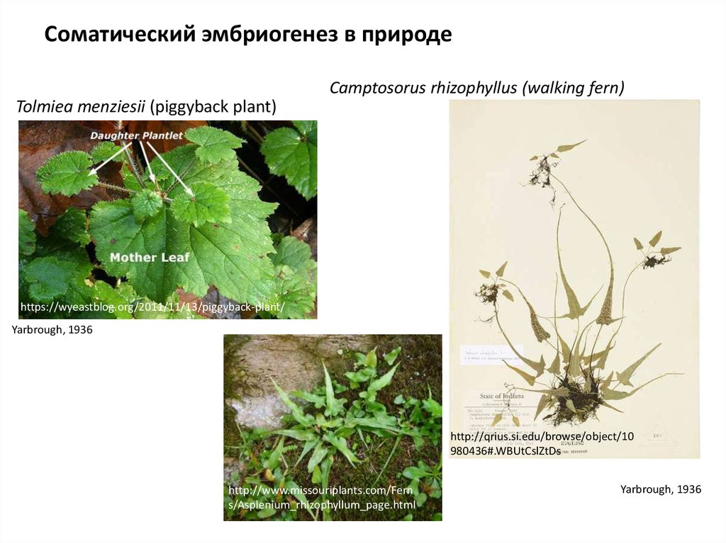 Соматический эмбриогенез в природеCamptosorus rhizophyllus (walking fern)