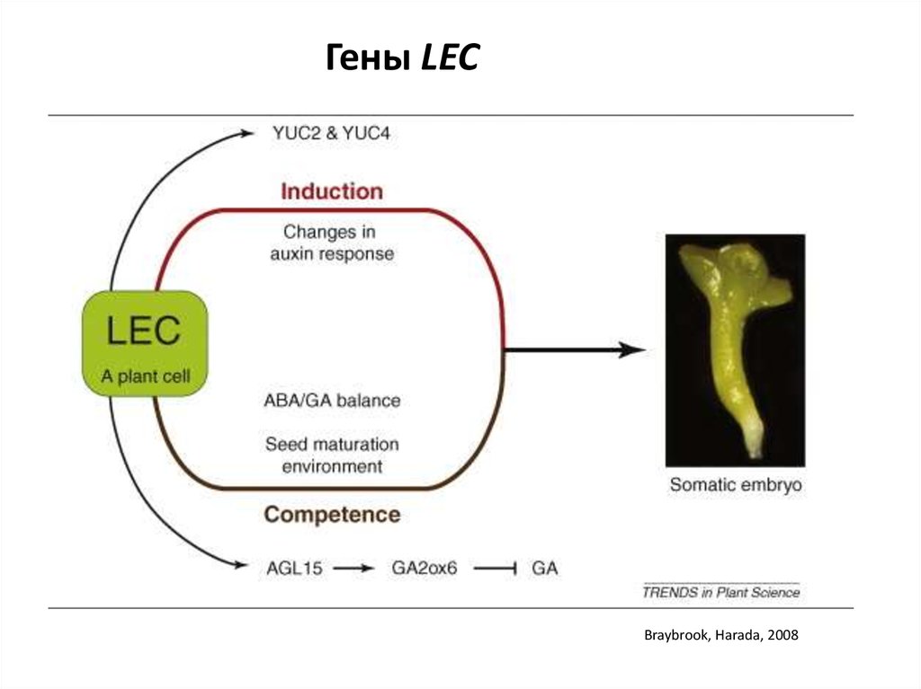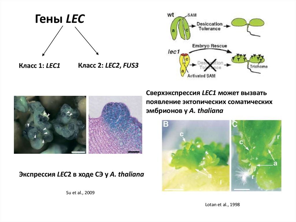 Экспрессия LEC2 в ходе СЭ у A. thaliana