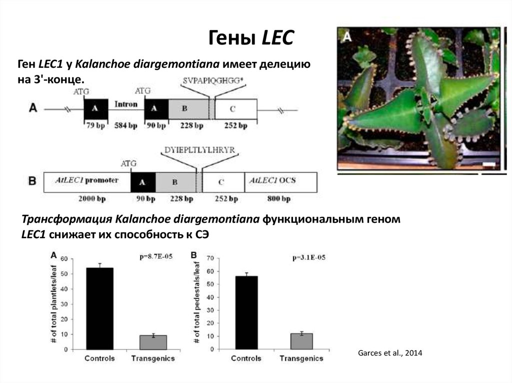 Гены LECГен LEC1 у Kalanchoe diargemontiana имеет делецию
