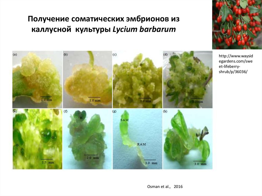 Получение соматических эмбрионов изкаллусной культуры Lycium barbarum