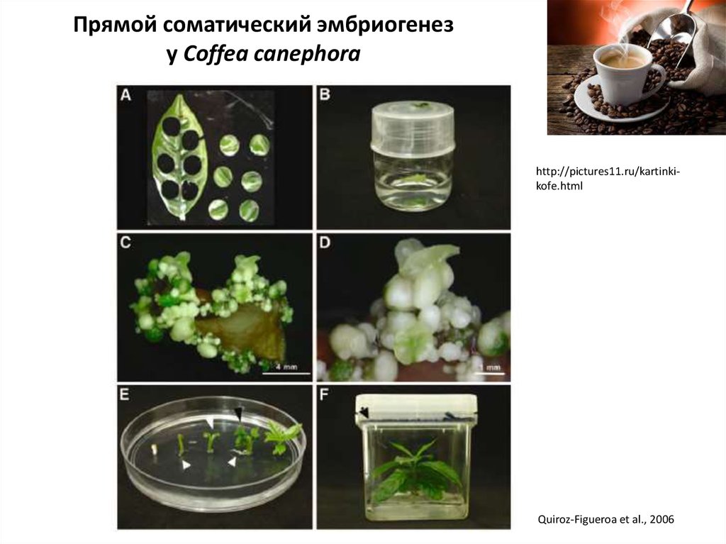 А у Coffea arabica соматические эмбрионы можно получить лишь при ингибировании