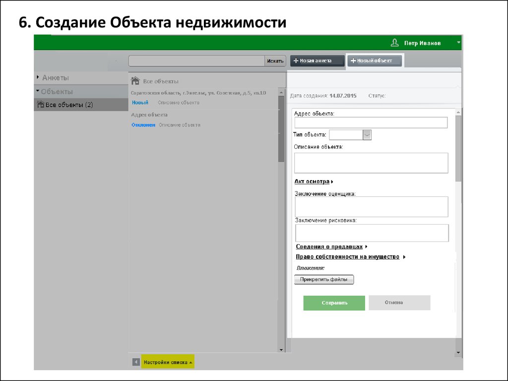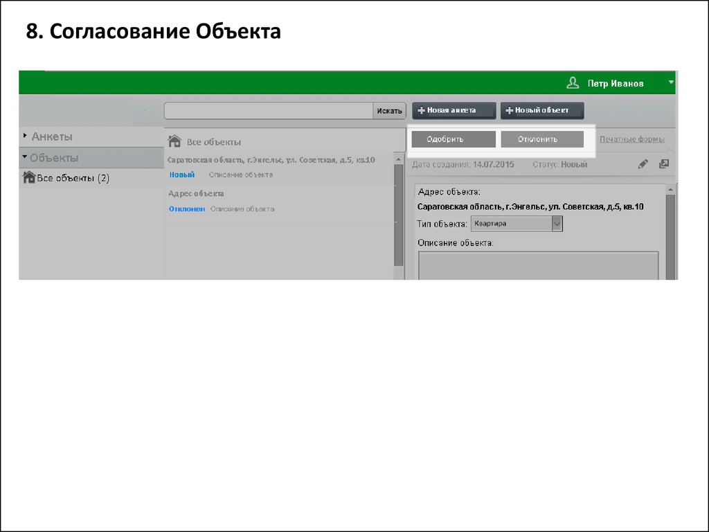 7. Просмотр и редактирование объектов недвижимостиРедактирование Объекта осуществляется таким же