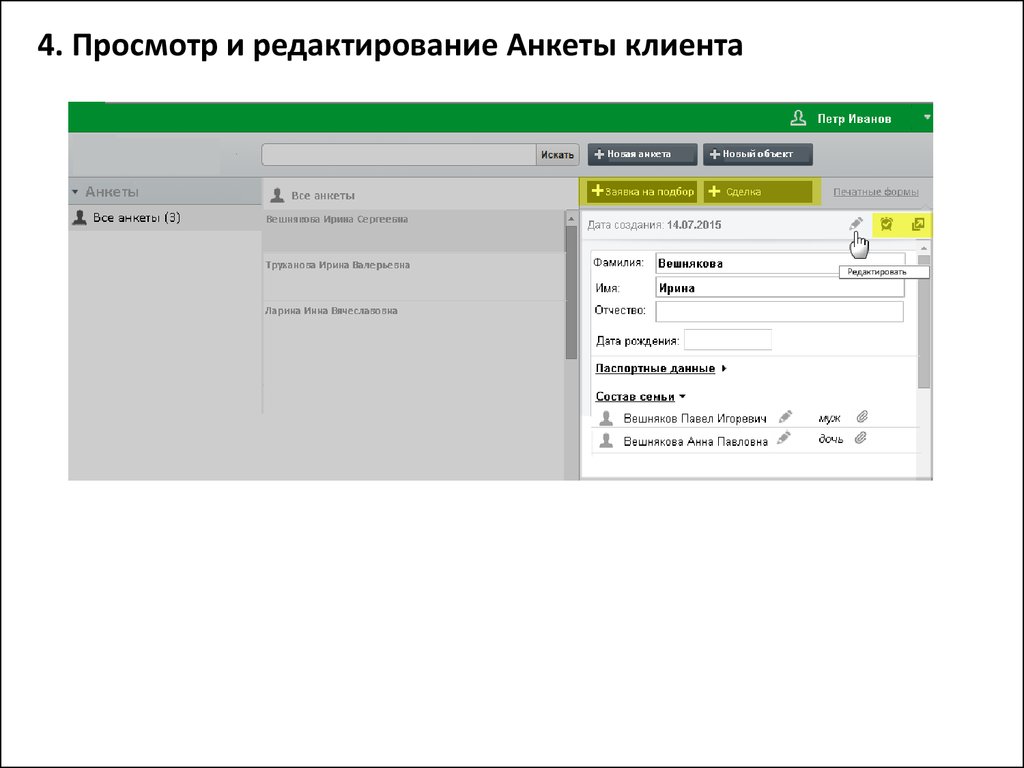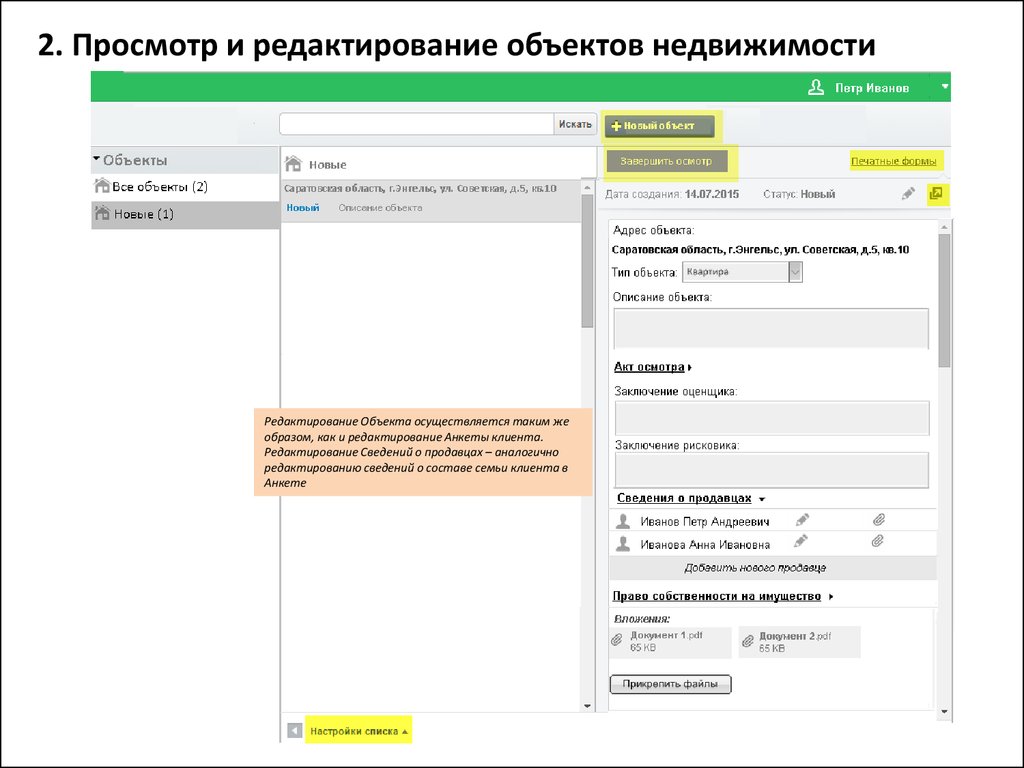 2. Просмотр и редактирование объектов недвижимостиРедактирование Объекта осуществляется таким же