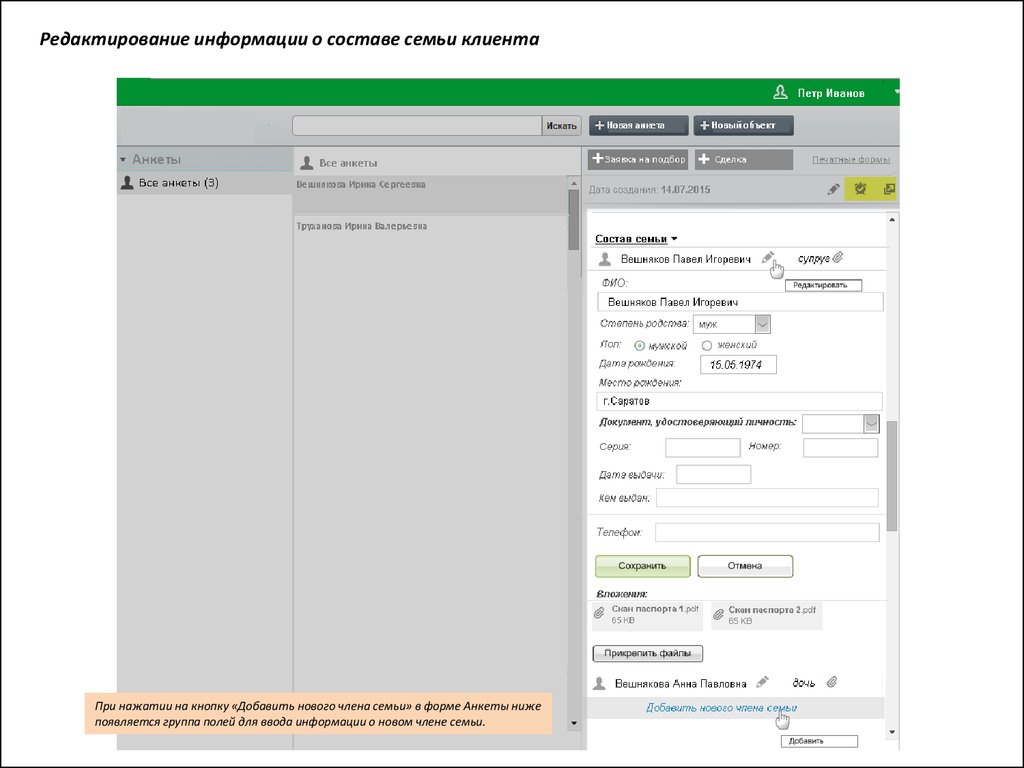 Редактирование информации о составе семьи клиентаПри нажатии на кнопку «Добавить нового члена семьи» в форме Анкеты ниже