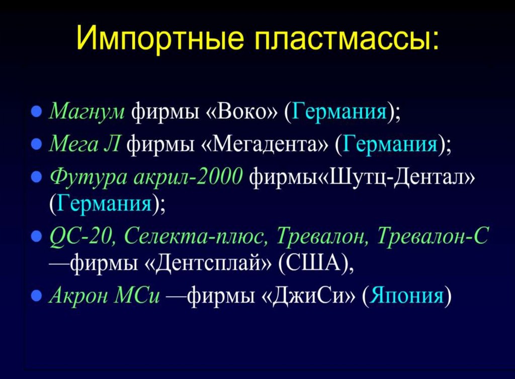 Пластмассы. Их применение в ортопедической стоматологии, классификация, состав