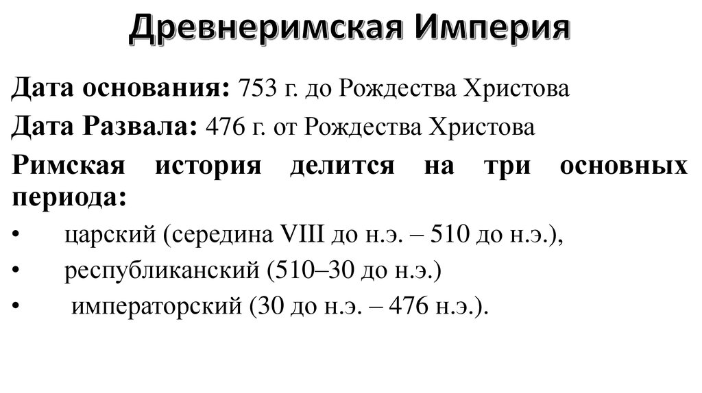 Дата основания: 753 г. до Рождества ХристоваДата Развала: 476 г. от Рождества Христова