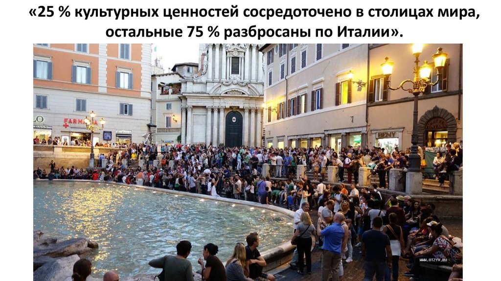«25 % культурных ценностей сосредоточено в столицах мира,остальные 75 % разбросаны по Италии».