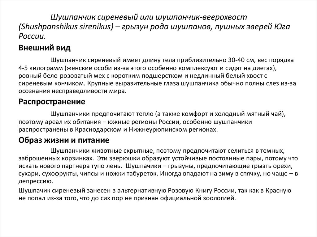 сиреневым кончиком. Крупные выразительные глаза шушпанчика обычно полны слез из-за