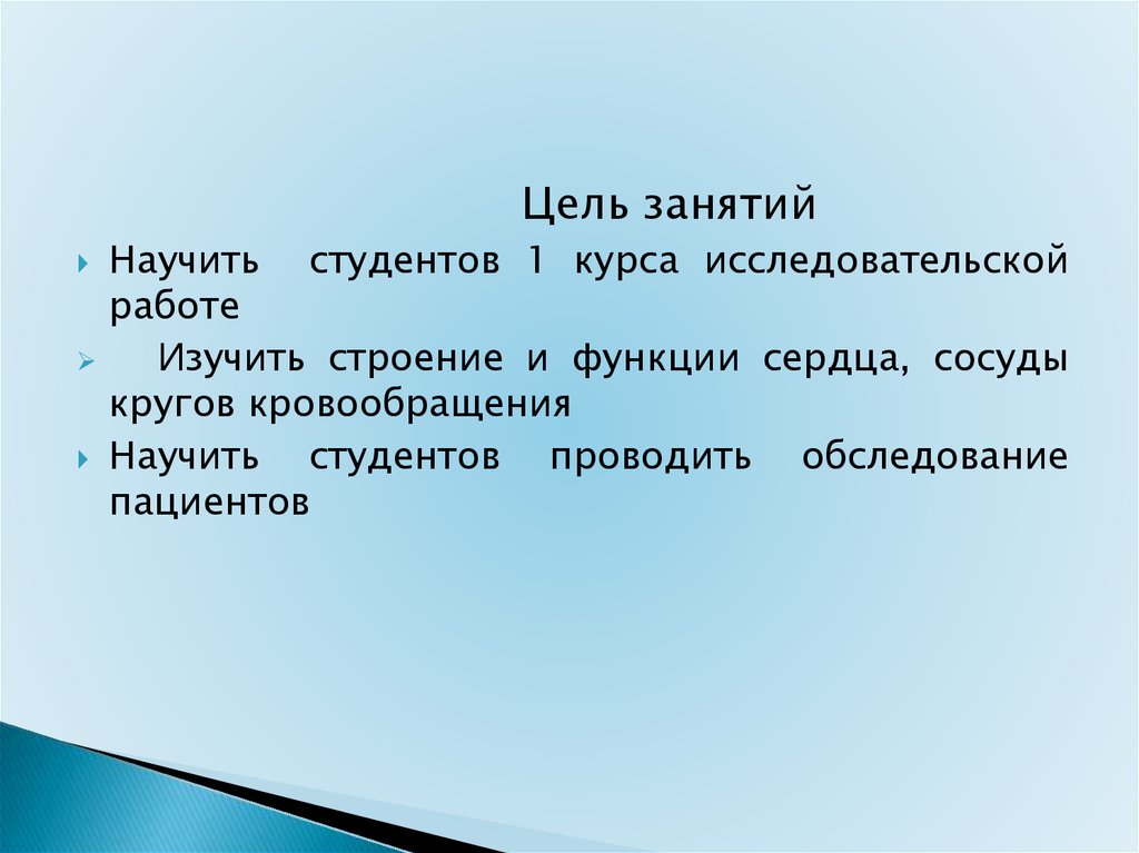 Цель занятийНаучить студентов 1 курса исследовательской