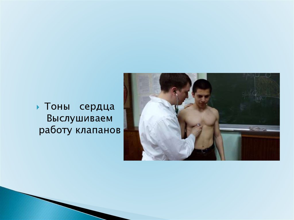 выслушивать тоны сердца, проводить аускультацию сердца, находить сердечный